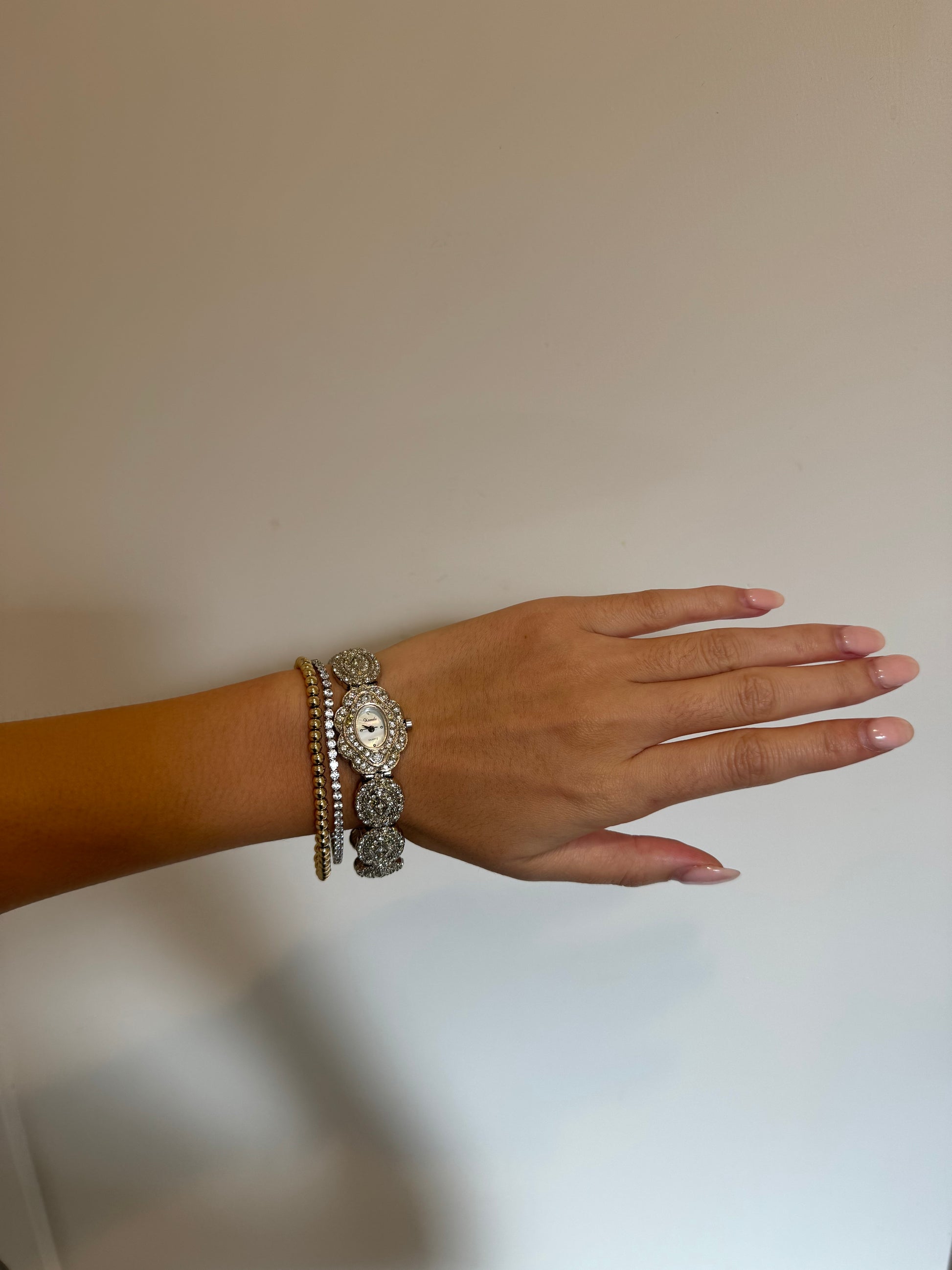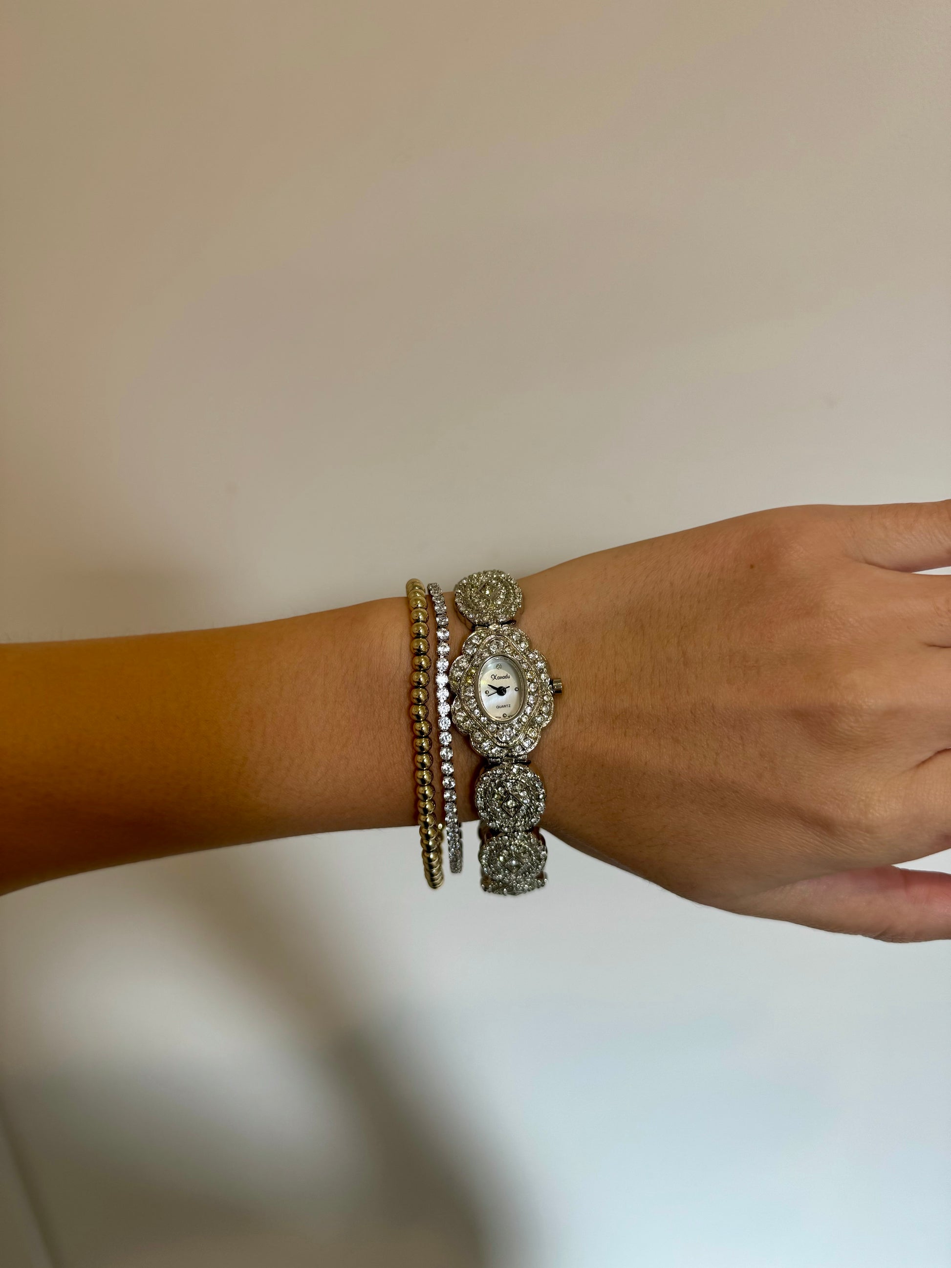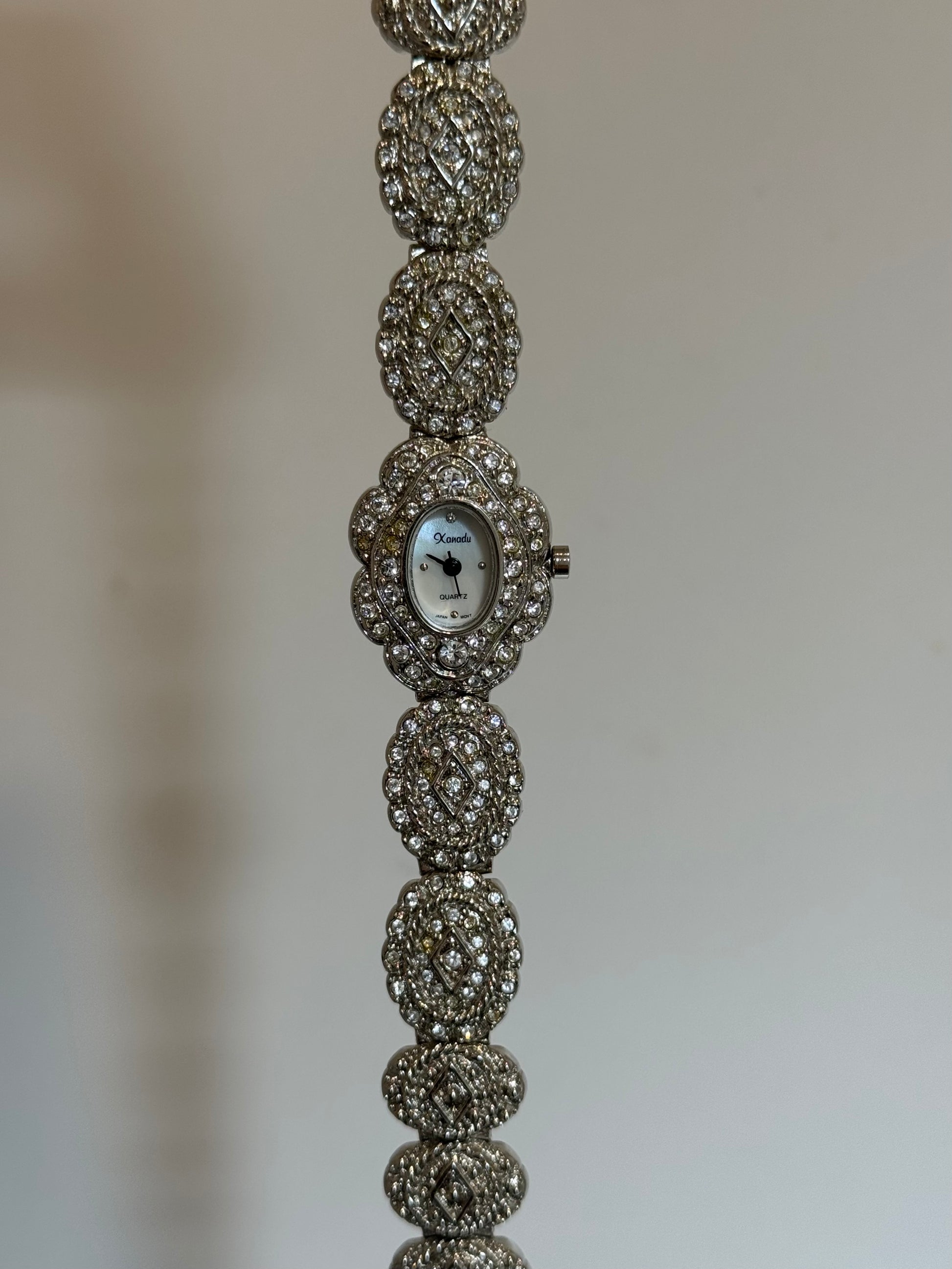 Silver toned full diamante watch, ONE OF A KIND and sparkles so stunningly - obsessed! Has a pearlescent dial - so unique!