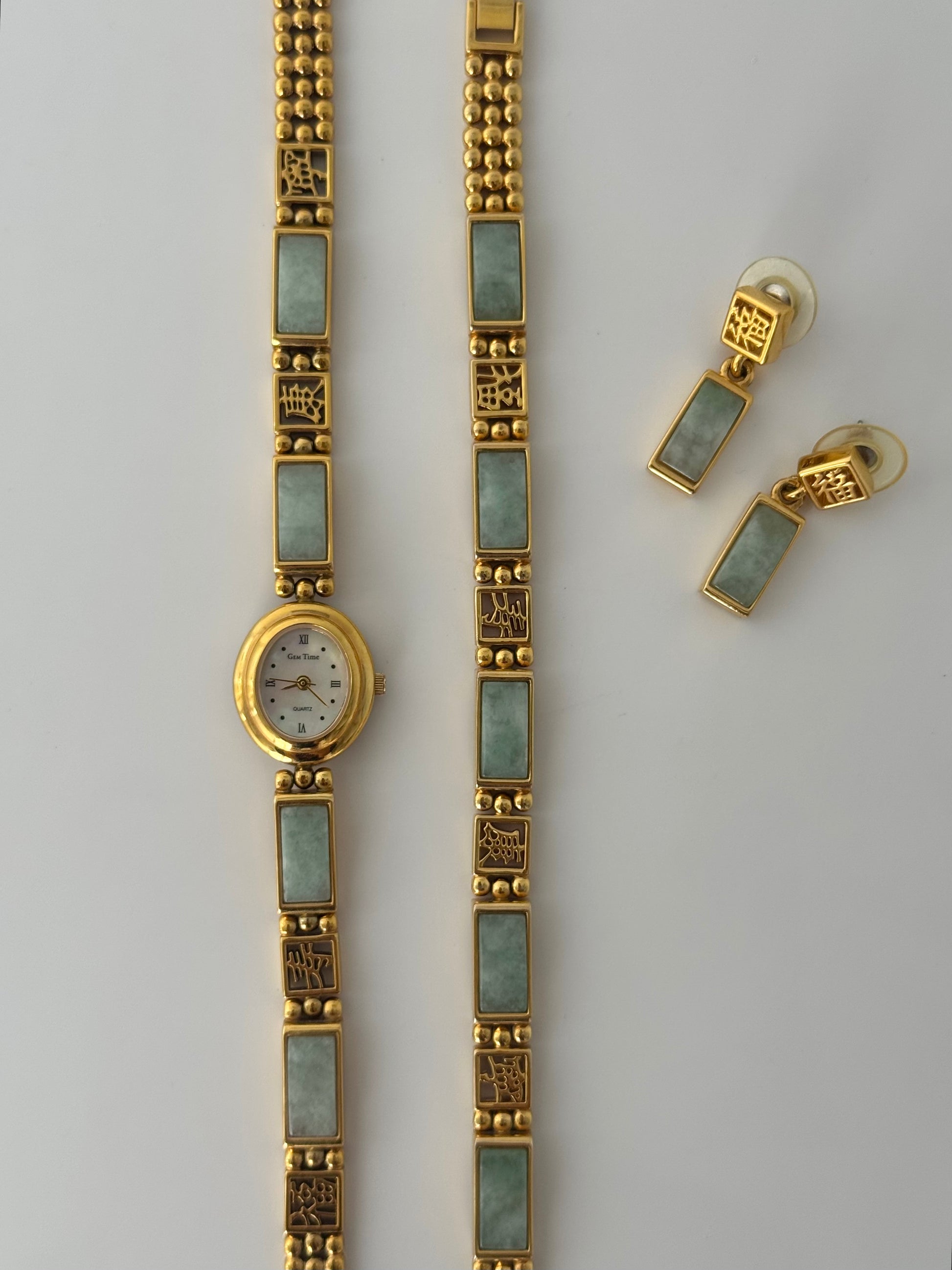 VERY RARE Jade Watch, Bracelet, and Earrings Set