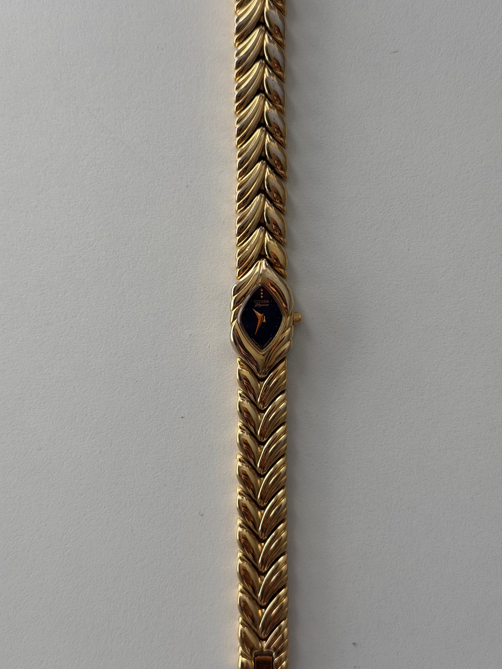 WORKING! Stunning Citizen Gold Toned watch with the most beautiful dark blue dial. The watch is in very timeless and a true classic - very rare to find and perfect addition to any collection! The watch is super classy and matches any stack.